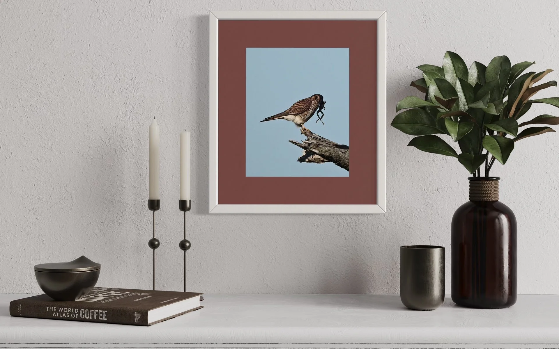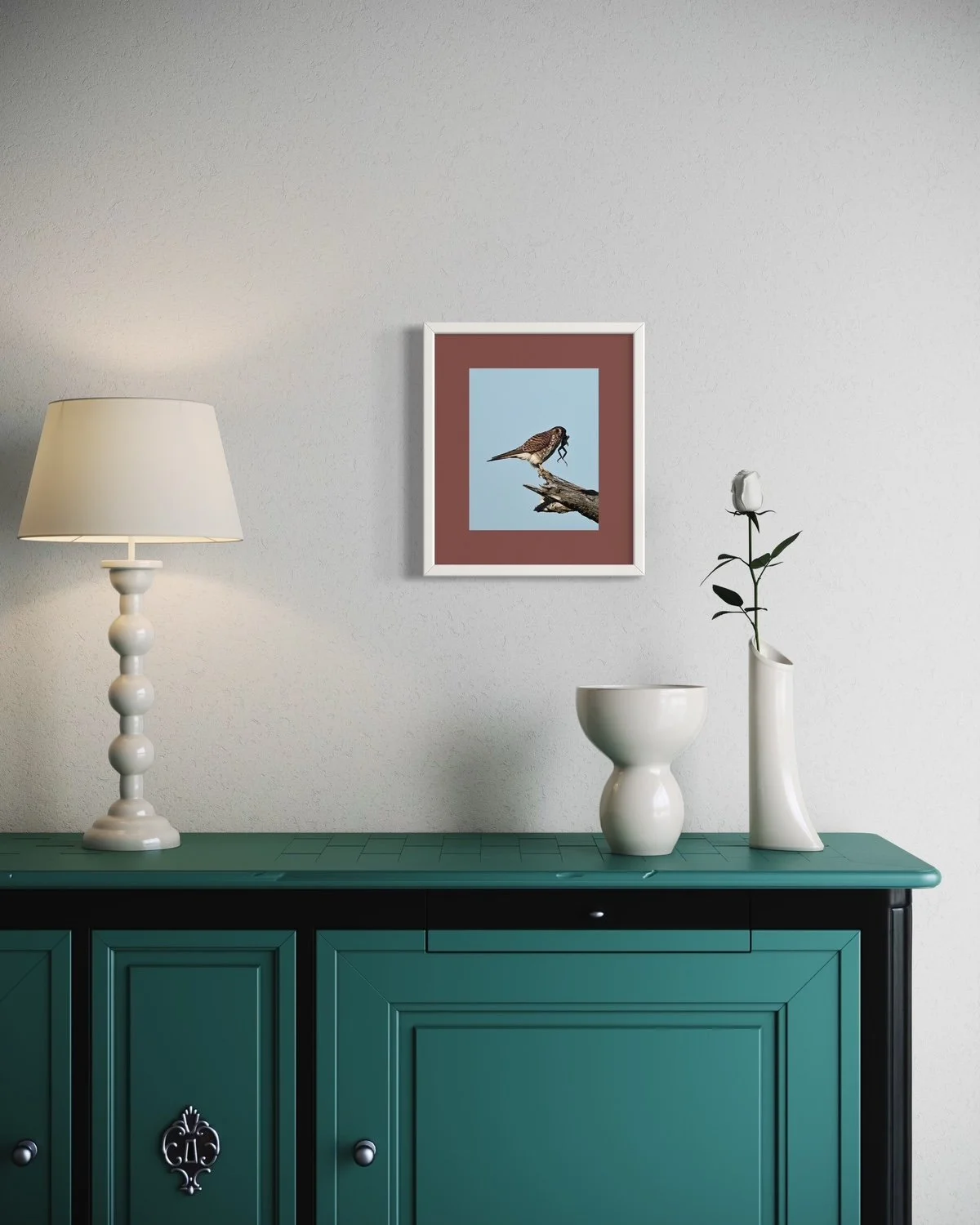 The American kestrel, with its striking plumage of rusty red and blue-gray, perches alertly on a low branch or a fence post, scanning the surroundings with keen eyes. Its typical posture is one of aggression—wings slightly spread, tail flicking, and a sharp gaze fixed on the approaching crow. The kestrel’s size, though smaller than the crow, belies its fierce predatory nature.
